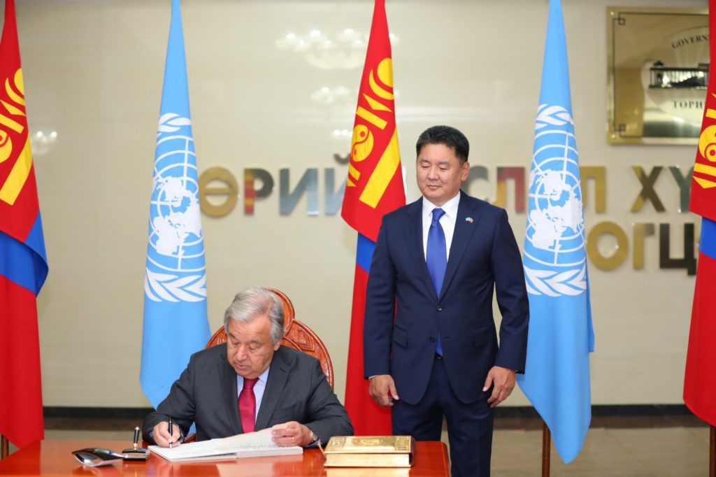 Монгол Улсын Ерөнхийлөгч Ухнаагийн Хүрэлсүхийн урилгаар НҮБ-ын Ерөнхий нарийн бичгийн дарга Антонио Гутерреш 2022 оны 08 дугаар сарын 08-11-ний өдрүүдэд Монгол Улсад албан ёсны айлчлал хийж байна.