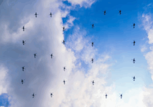 ТяньМэний талбайн эргэн тойронд сөнөөгч онгоцууд өнгөт утаа гаргаж, 80 мянган тагтаа, 80 мянган бөмбөлөг хөөргөжээ.