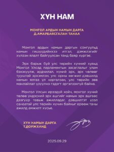 АРДЧИЛСАН НАМЫН УЛС ТӨРИЙН ЗӨВЛӨЛ, УИХ ДАХЬ АРДЧИЛСАН НАМЫН БҮЛГИЙН ӨРГӨТГӨСӨН ХУРЛЫН ШААРДЛАГА гаргажээ