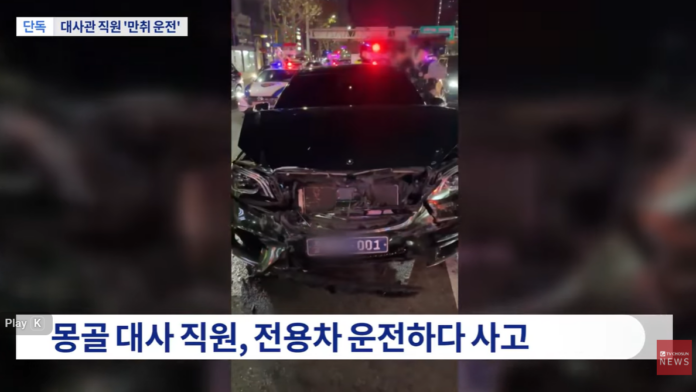 Уг осол 12-р сарын 12-ны өглөөний 6 цагийн орчимд Сөүл хотын Ганнам дүүргийн зам дээр болсон аж. Мөргүүлсэн цагаан машин маш ихээр эвдэрч, урд хэсгийг нь таних боломжгүй болсон бөгөөд жолооч нь мөн гэмтэл авсан байна. Харин осолд холбогдсон хар өнгийн тансаг седан автомашин дээр “Деса (дипломат)-ын зориулалтын машин” гэсэн тэмдэгтэй, 001 дугаартай байсан ч “Деса” гэсэн бичиг танигдахгүй байжээ.