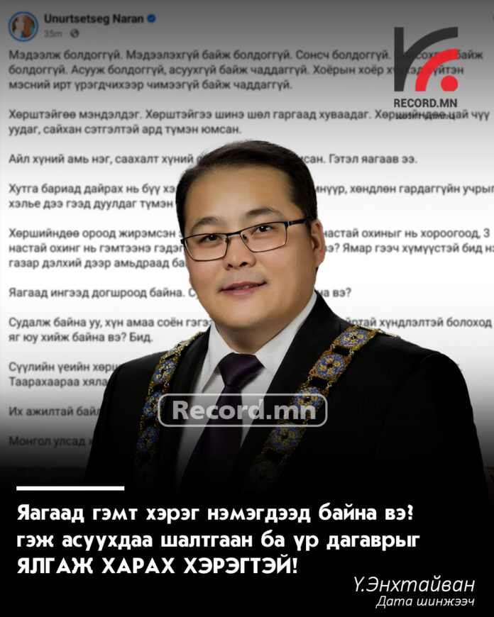 Сүүлийн үед нийгмийг цочроосон гэмт хэргүүд ихээр гарах болсон талаар иргэд, олон нийт бичиж байна. Тэгвэл дата шинэжээч Ү.Энхтайван ийм гэмт хэргүүд яагаад ихэсч байгаа шалтгааны талаар бичжээ.