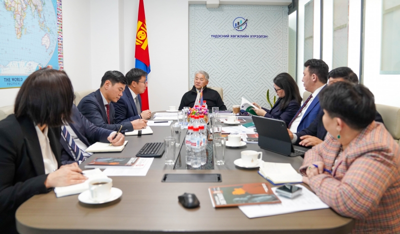 Уулзалтын эхэнд “Үндэсний хөгжлийн хүрээлэн”-гийн захирал Г.Дэнзэн байгууллагын үндсэн чиг үүрэг, хэрэгжүүлж буй судалгаа шинжилгээний ажлууд, ойрын болон дунд хугацаанд хийхээр төлөвлөсөн ажлуудаа танилцуулсан юм.