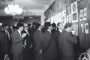 АИХ-ын депутатууд Төрийн сүлд, туг, далбаа,тамгын загварын үзэсгэлэн үзэж байна. Төрийн ордон 1991 он