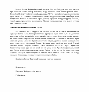 Энэ талаар оюутан Г.Мөнхбилэг дараах захидлыг манай Record.mn-ийн редакцид ирүүлснийг хүргэж байна.