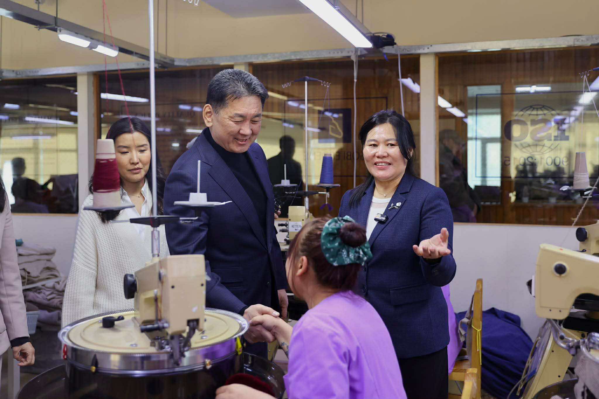 Монгол Улсын Ерөнхийлөгч Ухнаагийн Хүрэлсүх “Цагаан алт” хөтөлбөрийн хүрээнд үндэсний үйлдвэрлэгч аж ахуйн нэгжүүдэд ажиллалаа.