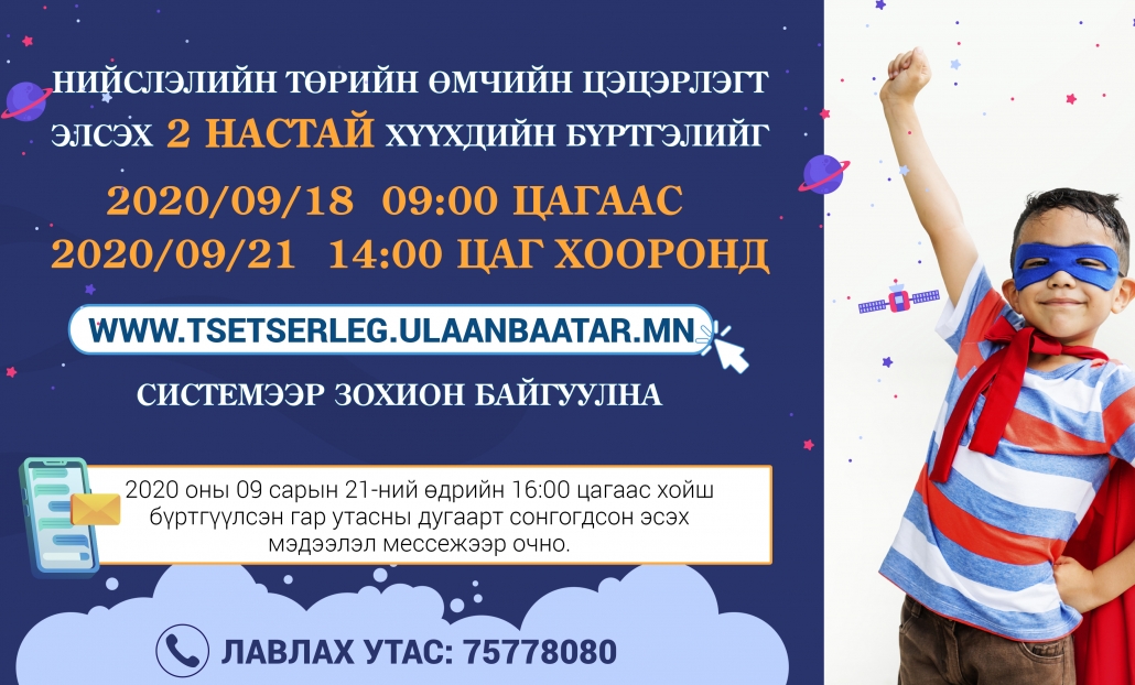 Улсын хэмжээнд хоёр настай 77 мянга гаруй хүүхэд байгаагийн 10 мянга орчим нь Улаанбаатар хотынх бөгөөд тэдгээрийн 80 орчим хувийг цахимаар цэцэрлэгт бүртгэх юм.