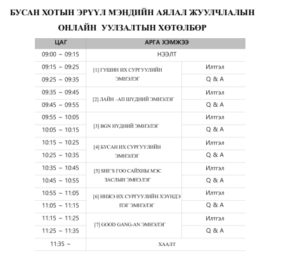 Цахим уулзалт 11-р сарын 30-нд өглөөний 09:00 цагаас 12:00 цагийн хооронд болох юм. Уулалтын хөтөлбөрийг танилцуулж байна.