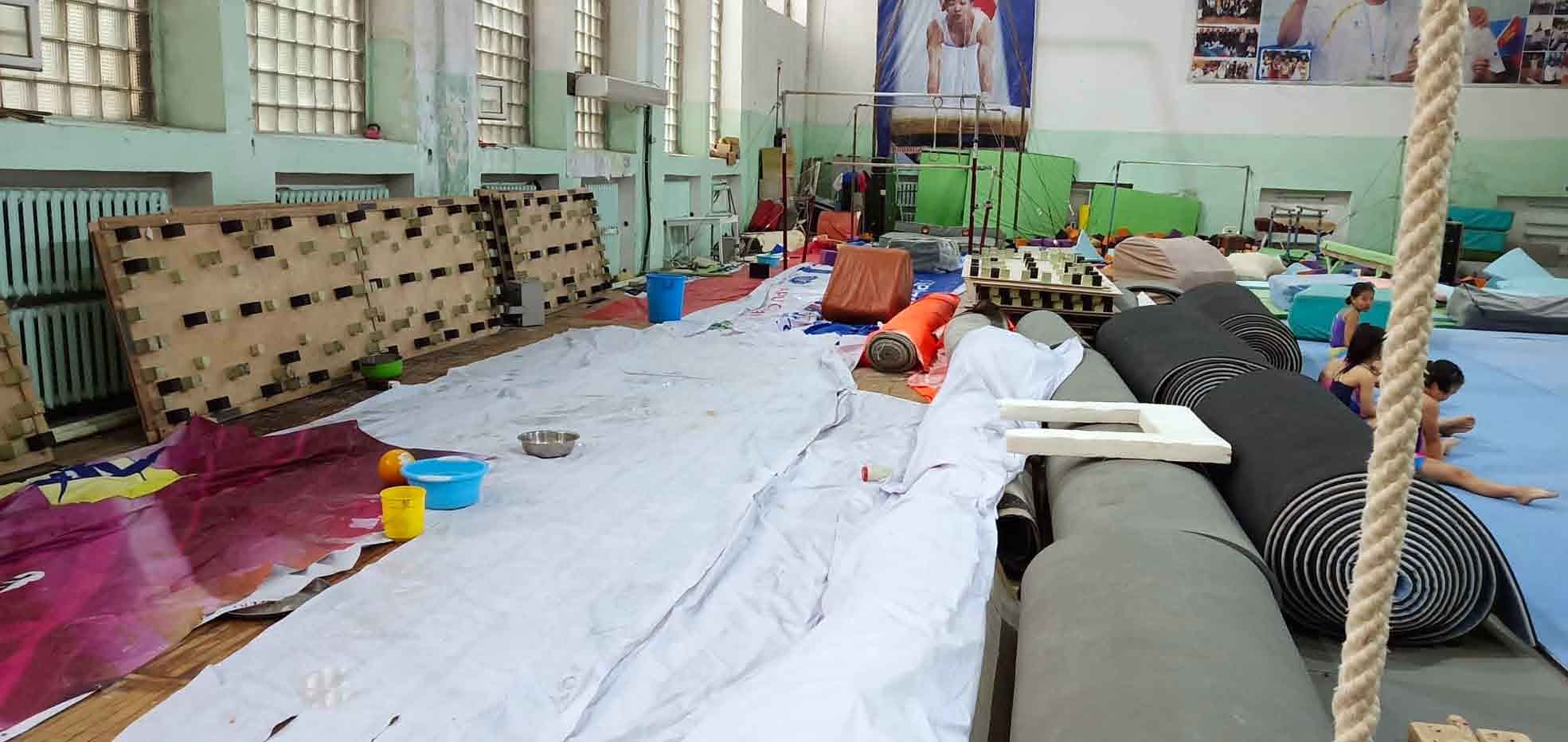 Монголдоо ганцхан байдаг гимнастикийн заал нурах эрсдэлд оржээ. Учир нь гимнастикийн заалтай тулгаад 547 метр квадрат газарт иргэн В.Баяржаргал гэх эрхэм орон сууц барьж эхэлжээ. Үүнээс үүдэн хөрсний ус ундарч, гимнастикийн заал болон тамчирдын оршин суудаг 43-р байр доороосоо ус нэвчин, улмаар таазнаасаа ус дусах болжээ. Гимнастикийн заалтай тулган 547 метр кв газарт барилга барьж эхэлсэн “Интер групп” ХХК нь УИХ-ын гишүүн Л.Энх-Амгалангийн эзэмшлийнх бөгөөд түүний эгчийн хүүхэд В.Баяржаргал гэх эрхэм удирддаг ажээ. В.Баяржаргал уг газрын 2018 онд худалдаж авахаас өмнө уг газар УИХ-ын гишүүн, Эрчим Хүчний сайд Ц.Даваасүрэнгийн нэр дээр байжээ.