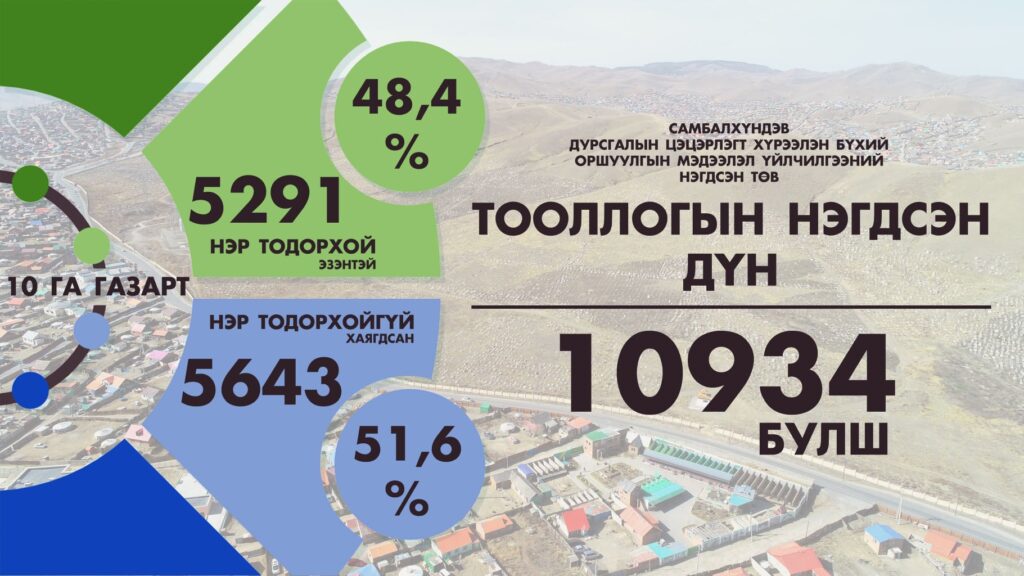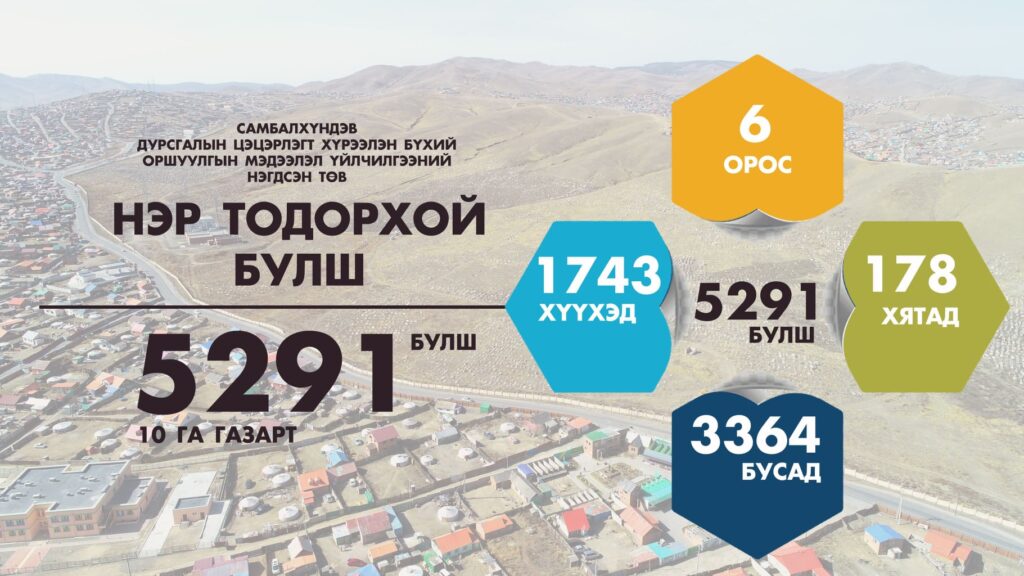 Харин нэр тодорхойгүй хаягдсан 5643 булшны 3964 нь хөшөө чулуугүй, 796 булшны хөшөө эвдэрсэн, зургаан булш хөшөөний бичилт арилсан байдалтай байгааг тогтоожээ. Хэрэв цэцэрлэгт хүрээлэн байгуулахаар төлөвлөгдсөн хэсэгт ойр, дотнын хүнээ оршуулсан бол 7210-0101 лавлах дугаар, www.sambalkhundev.mn сайтад хандан төслийн талаар дэлгэрэнгүй мэдээллийг авах боломжтой. Мөн чөлөөлөлтийн талбайд орсон нэр тодорхой шарилын талаарх мэдээллийг хайлтын хэсгээс шүүх боломжтой юм.